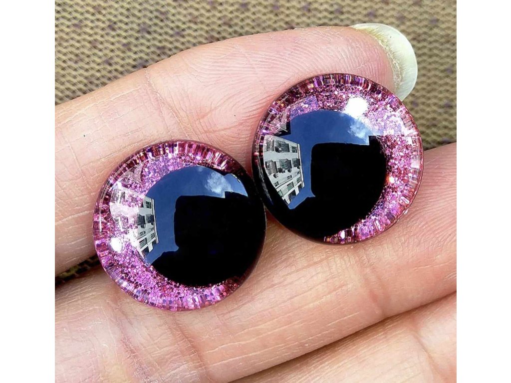 Bezpečnostní oči 3D GLITROVÉ Ø 18MM - růžová šilhající