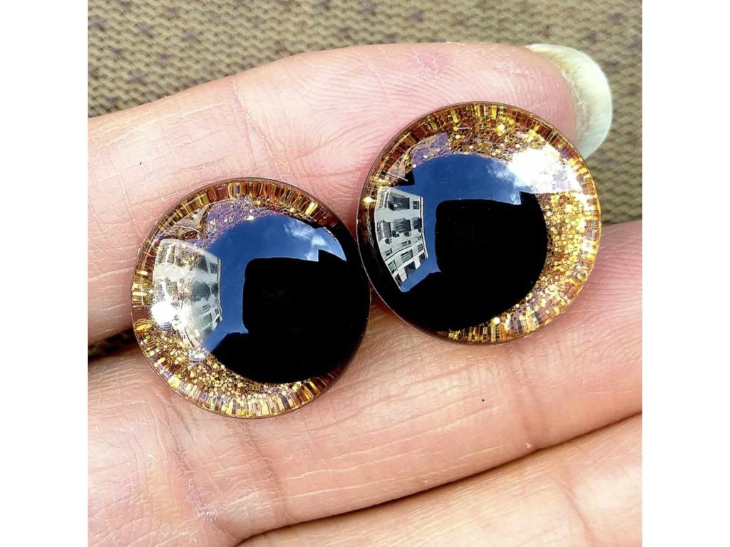 Bezpečnostní oči 3D GLITROVÉ Ø 18MM - zlatá šilhající