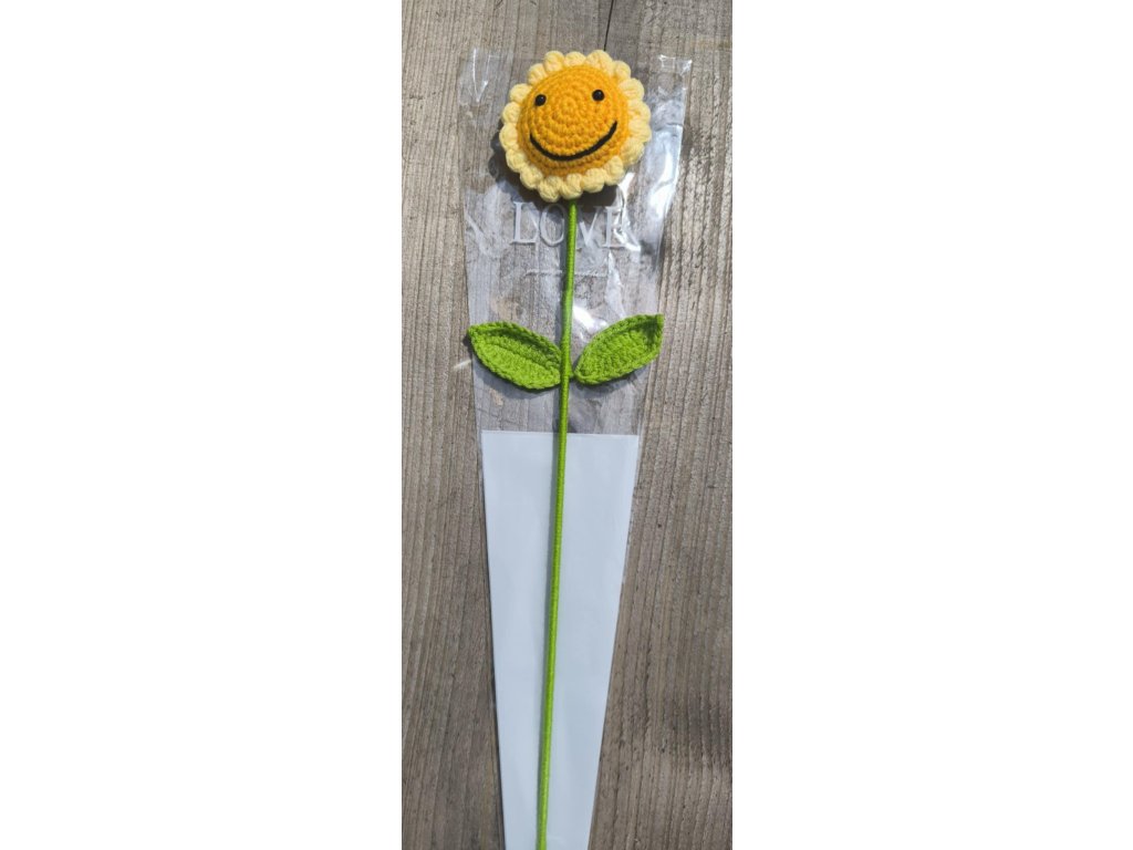 Háčkovaná květina Slunečnice s úsměvem, 10,5 × 43 cm
