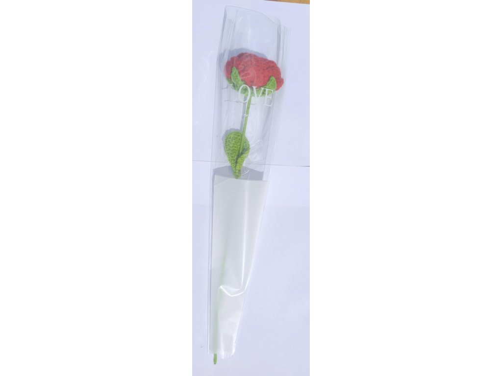 Háčkovaná růže červená 7cm × 41 cm
