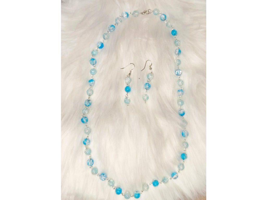 Ručně vyráběná souprava – náhrdelník a náušnice 01 - modrá