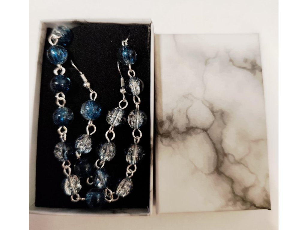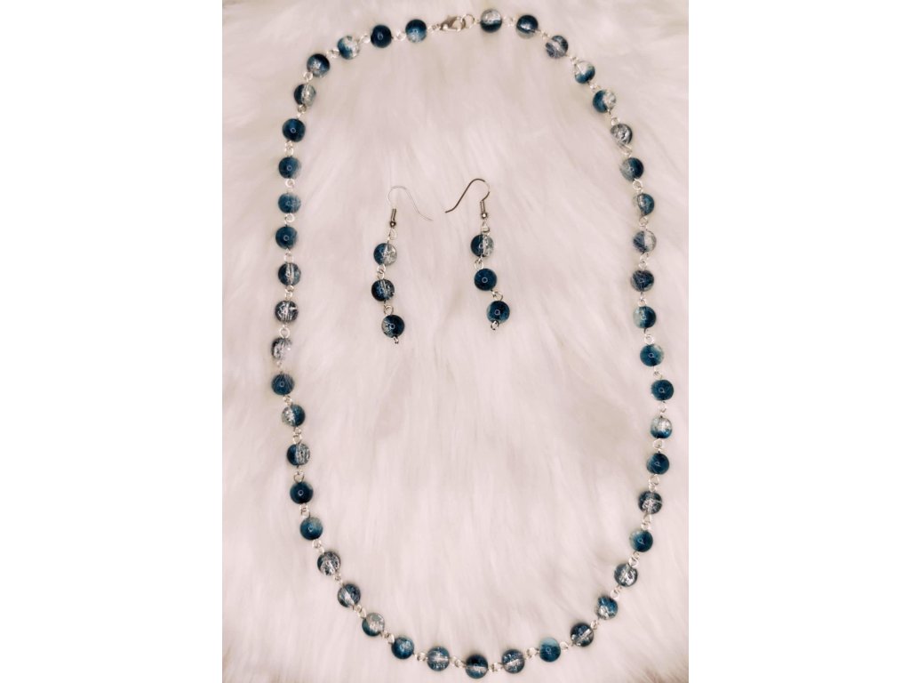 Ručně vyráběná souprava – náhrdelník a náušnice 03 - tmavý tyrkys